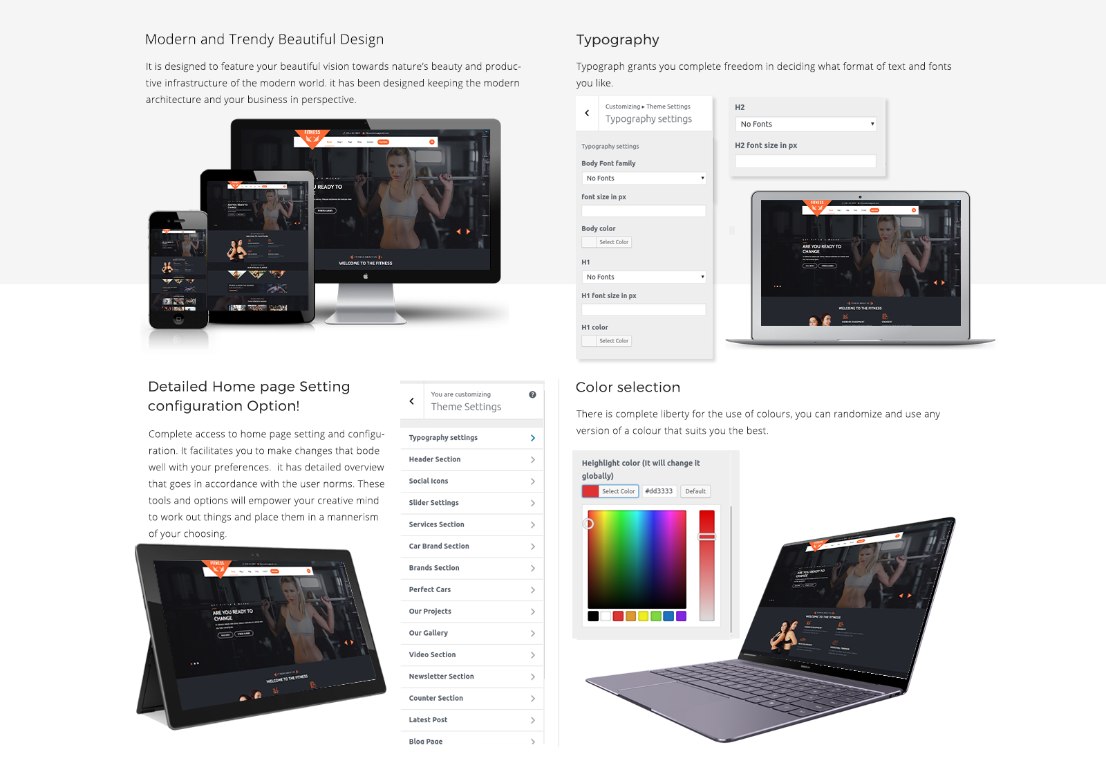 Quickly change aspects of the design with a built-in customizer.