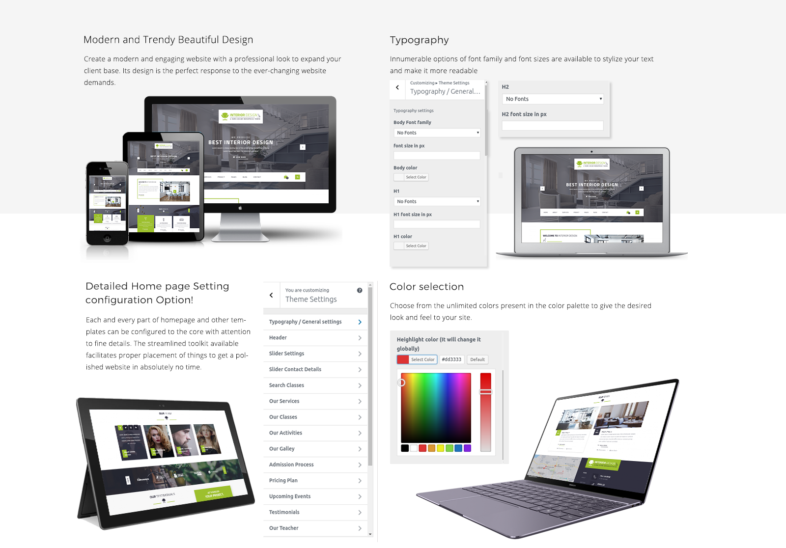 With interior design WordPress theme, you have the typography and also the relevant tags for improving the search experience. It has enable disable options on all sections and sticky post and comment threads. It has social media feature increasing the scope of global business. It has more than 100 font family options as well as multiple relevant tags to improve search experience. Interior design WordPress template provides customer support and is translation ready. With translation ready feature, the scope of global business increases. It has simple menu option and is SEO friendly. With SEO friendly nature, it goes high in ranking in search engine. It has global colour option apart from admin panel and custom shortcodes.