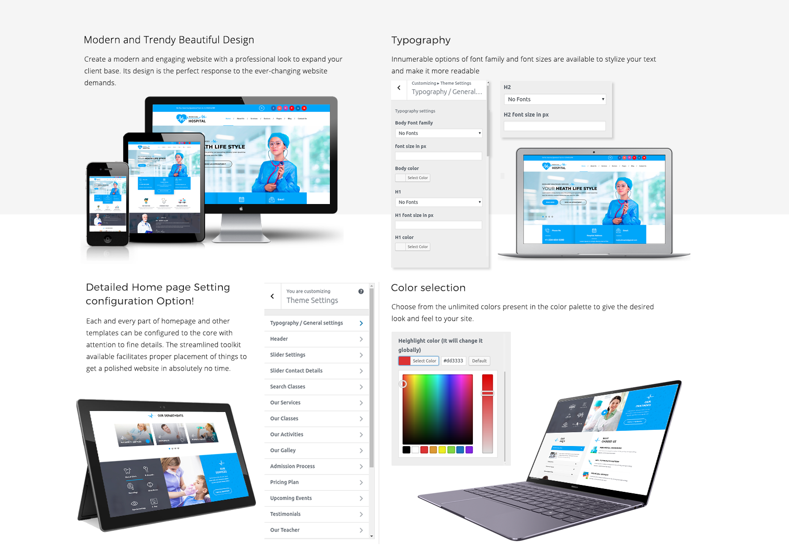 Medical WordPress theme is spectacular and you can make use of it for various types of websites related to dental or medical field or for research or business in these areas. It has custom page templates and is fully integrated with the latest font awesome. It has responsive layout on all devices and has advanced colour options and colour pallets. WordPress template for medical store does not want you to have prior coding experience to craft a medical website. It may sound unrealistic but it is true. It has the global colour option.