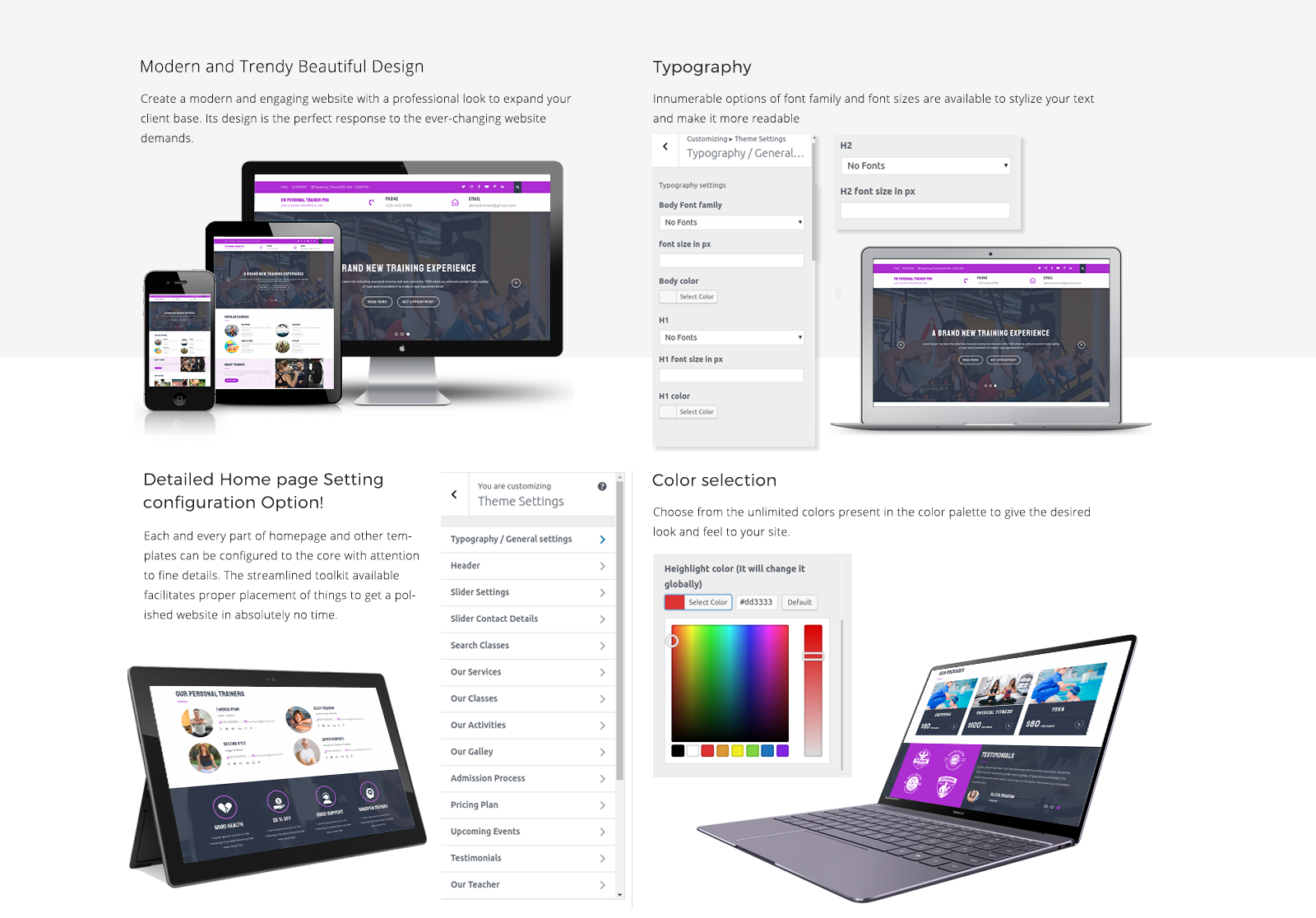 Personal trainer WordPress template is spectacular and creates a first impression. You can make an exclusive business website for health and fitness or an online fitness consultancy or a website related to gym. It has the brand section, product section and Instagram feed apart from slider with unlimited slides. As you move to the live preview page, you will be flabbergasted with the exclusive design. It is of premium category with advanced colour options and colour pallets and above all it is SEO friendly with more than 100 font family options. WordPress template for personal trainer has the contact page template apart from responsive layout for all devices and secondly it has global colour option. It is well sanitised as per the standards of WordPress and ensures about the top grade of the end product. It is not only responsive but retina ready as well and also has social media feature besides footer widgets and editor style.