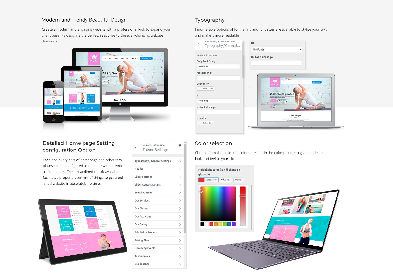 This premium quality yoga WordPress theme is a detail-oriented and finely crafted WordPress theme for yoga and fitness related websites. Its creators have developed this theme to serve as an incredible solution for businesses related to yoga and fitness. With this, you are able to create attractive as well as engaging business websites with minimum efforts. You don’t need to go into the troublesome coding part as you can directly change the elements of the theme. A novice can also come up with a crafty website with this theme. This eliminates the need for hiring any professional developer to design a website for you. The theme customizer allows changing the colors and fonts along with the other elements of the theme. You can directly use the yoga fitness templates for designing the web page.